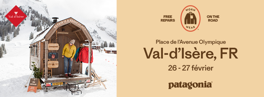 Du 26 au 27 février 2026, l’équipe Worn Wear sera présente sur la Place de l’Avenue Olympique, à Val-d’Isère, avec sa célèbre roulotte Patagonia – un atelier mobile où les passionnés de montagne pourront faire réparer gratuitement leurs vêtements abîmés.